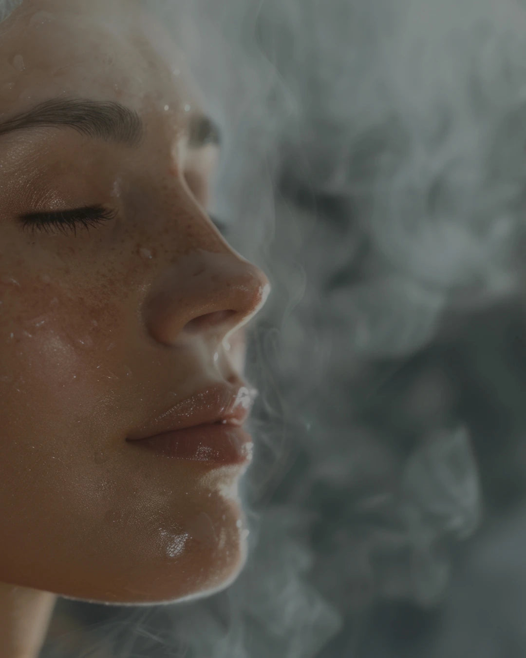 Nano-ionic steam deeply hydrates and opens pores, followed by a controlled cold plunge that tightens skin, reduces puffiness, and helps seal in moisture.